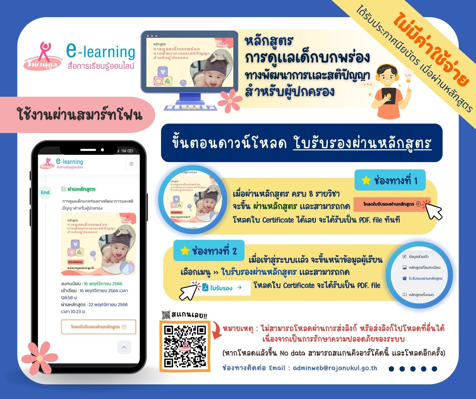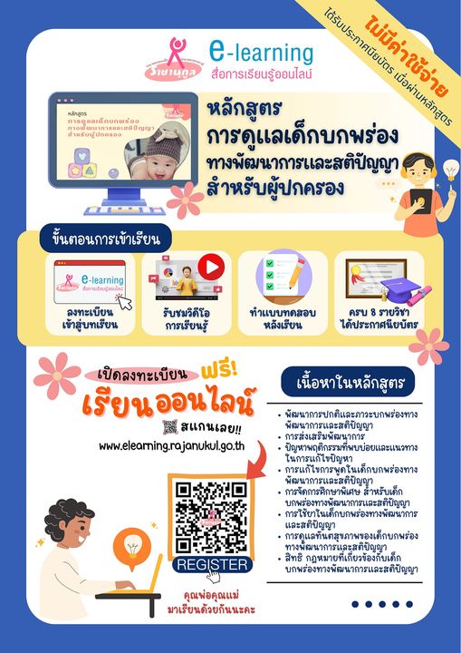 1.การดูแลเด็กบกพร่องทางพัฒนาการและสติปัญญาสำหรับผู้ปกครอง รวม 8 บทเรียน
